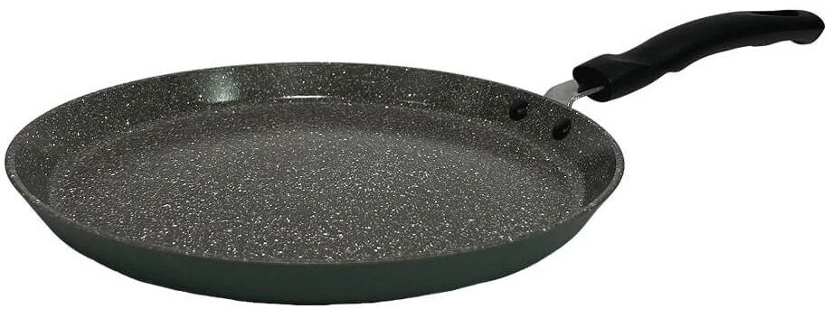 Сковорода має діаметр 25 см, зручну не нагрівну ручку та стильний зелений колір. Завдяки продуманій формі вона стане вашим надійним помічником у приготуванні сніданків і десертів.