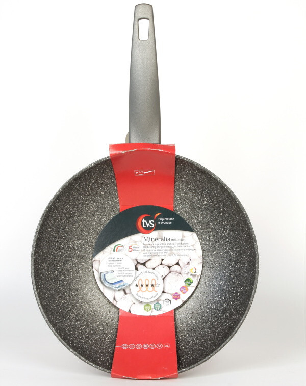 Посуд Mineralia induction від TVS має революційне антипригарне покриття Quarzotek. У цього покриття є основні риси, властиві каменю. На базовий шар алюмінію наноситься кілька шарів особливо твердих мінеральних частинок великої концентрації. Таке покриття має високу зносостійкість, не впливає на смак їжі, не містить ПФОА. Посуд Mineralia induction підходить для всіх кухонних плит, та відрізняється особливою ефективністю при використанні на індукційних плитах, завдяки диску з нержавіючої сталі.