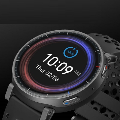 Годинник оснащений 1,5-дюймовим AMOLED-дисплеєм із роздільною здатністю 480×480 і піковою яскравістю до 3 000 ніт — зображення залишається чітким навіть під прямим сонячним світлом. Корпус виготовлений з алюмінієвого сплаву та полімеру, важить лише 39,5 г без ремінця. Завдяки шарнірній конструкції кріплення ремінця годинник гнучко повторює рух зап'ястя, що робить носіння комфортним цілодобово. Силіконовий ремінець надійно тримається на зап'ясті під час будь-яких фізичних навантажень. Ступінь захисту 5 ATM дозволяє використовувати годинник під час плавання на глибині до 50 метрів.