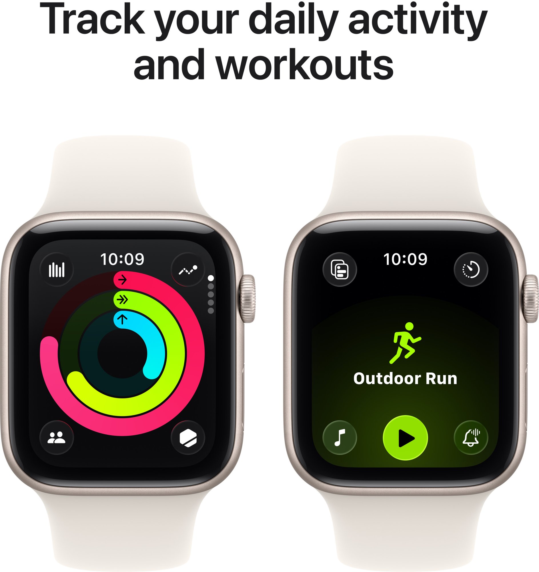 З Apple Watch SE 3 ви можете легко відстежувати фізичну активність, незалежно від того, чи бігаєте ви, плаваєте, займаєтеся йогою чи танцями. Годинник підтримує різноманітні тренування, надаючи реальні метрики в моменті та персоналізовані поради для мотивації. Завдяки вбудованому GPS ви можете точно вимірювати відстань і маршрути без телефону, що ідеально для пробіжок на свіжому повітрі. Функція Activity Rings допомагає слідкувати за щоденною активністю, надихаючи досягати нових цілей.