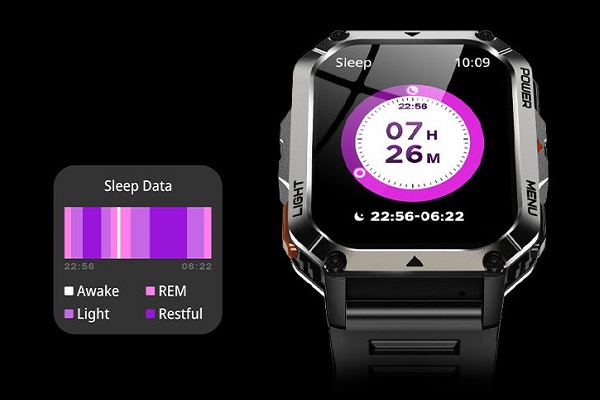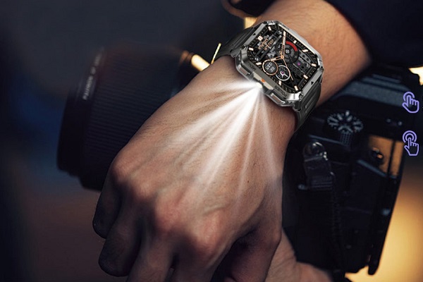 Тактичний ліхтарик з режимами освітлення та спалаху працює до 5 годин, а таймер, секундомір і будильник допомагають організовувати день. Функція пошуку телефону та персоналізовані меню роблять використання смартгодинника інтуїтивним.