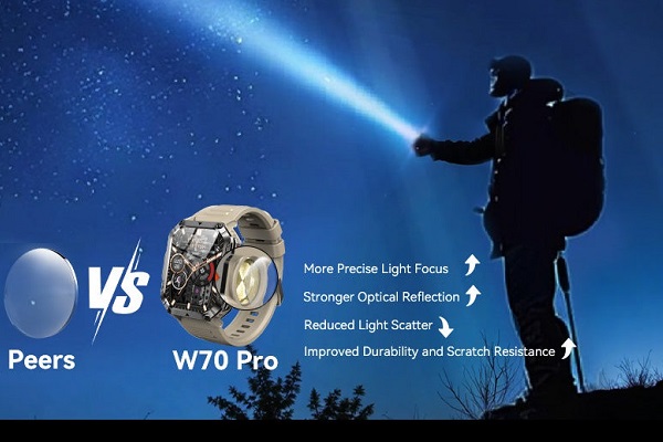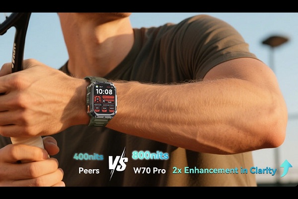 Дисплей розміром 2.1 дюйма з яскравістю 800 ніт на W70 Pro гарантує чітке та ясне зображення навіть під прямим сонцем, дозволяючи без зусиль переглядати повідомлення, дзвінки та дані тренувань за будь-якого освітлення.