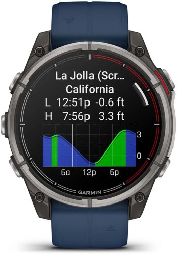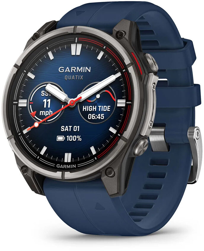 Garmin quatix 8 — преміальний морський смартгодинник з GPS і яскравим AMOLED-дисплеєм, спеціально створений для любителів катання на човнах та активного способу життя. Він поєднує передові морські функції з потужними інструментами для фітнесу та моніторингу здоров'я, допомагаючи користувачам ефективно керувати човном, тренуватися та стежити за самопочуттям.