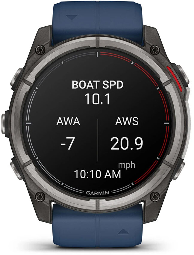 Garmin quatix 8 — преміальний морський смартгодинник з GPS і яскравим AMOLED-дисплеєм, спеціально створений для любителів катання на човнах та активного способу життя. Він поєднує передові морські функції з потужними інструментами для фітнесу та моніторингу здоров'я, допомагаючи користувачам ефективно керувати човном, тренуватися та стежити за самопочуттям.