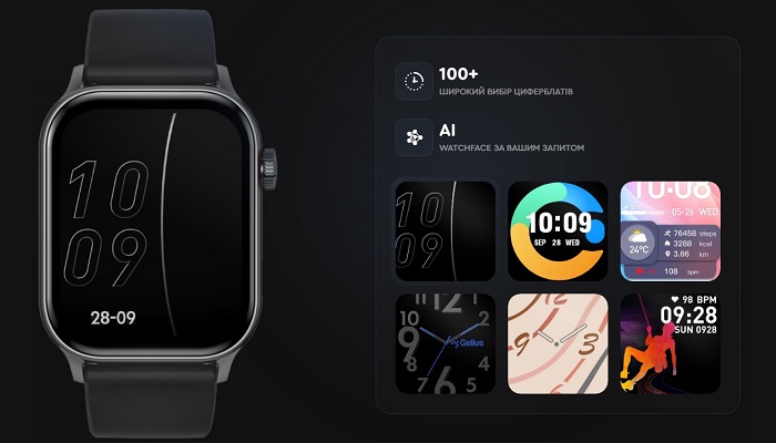 Для любителів спорту передбачено понад 100 спортивних режимів із детальною статистикою, яка синхронізується з інтуїтивним додатком DaFit для iOS та Android — там можна аналізувати прогрес, обирати з-понад сотні унікальних циферблатів і налаштовувати меню швидкого доступу під свої потреби. Годинник також радує смартфункціями: сповіщеннями з месенджерів, додатків і календаря, керуванням музикою та камерою смартфона, прогнозом погоди, функцією «Знайти телефон», секундоміром, таймером, калькулятором, режимом ліхтарика та регульованою яскравістю екрана.