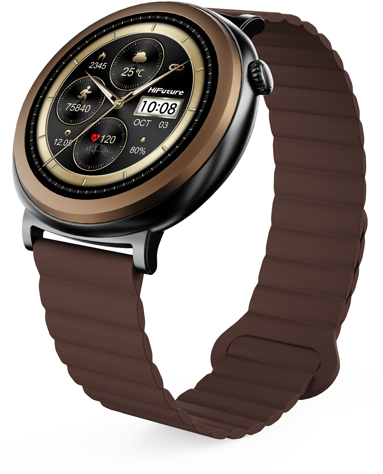 Aurora HiFuture дозволить тримати ритм життя під контролем. Amoled-дисплей, функція Always on Display, технологія Syntra AI для відстеження здоров'я та зручний магнітний силіконовий ремінець поєднані для максимального комфорту.