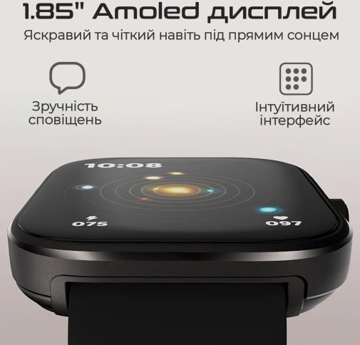 Завантажуй додаток для синхронізації годинника, управління повідомленнями, відстеження показників та налаштування різних функцій.