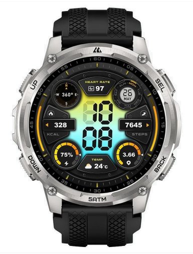 Візуальний контроль забезпечує 1.5-дюймовий AMOLED-дисплей із високою роздільною здатністю 466 × 466 пікселів, який у поєднанні з яскравістю до 1000 кд/м² гарантує чітке зображення навіть під прямим сонячним світлом. Плавність інтерфейсу доповнюється частотою оновлення 60 Гц, а автоматичне регулювання яскравості адаптує екран до навколишніх умов. Захисне скло Corning Gorilla Glass 3 підсилює стійкість до подряпин і щоденного зношування, зберігаючи екран у відмінному стані.