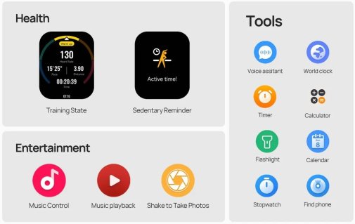 Понад 100 спортивних режимів охоплюють біг, плавання, велосипед, йогу, силові тренування та багато інших видів активності. Годинник рахує кроки, дистанцію, спалені калорії та формує звіти після кожного заняття. Це дозволяє бачити прогрес і мотивує рухатися більше.