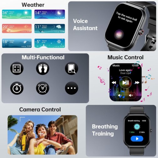 Понад 100 спортивних режимів дозволяють точно фіксувати тренування — від бігу, плавання, йоги чи фітнесу до велосипедних прогулянок і танців. Годинник витримує занурення у воду (IP68), тому його не потрібно знімати під час миття рук, дощу чи плавання в басейні. Підключення через Bluetooth забезпечує стабільний зв’язок зі смартфоном на Android та iOS — ви отримуєте сповіщення, можете відповідати на дзвінки через гучний зв’язок, керувати музикою та використовувати голосового асистента.