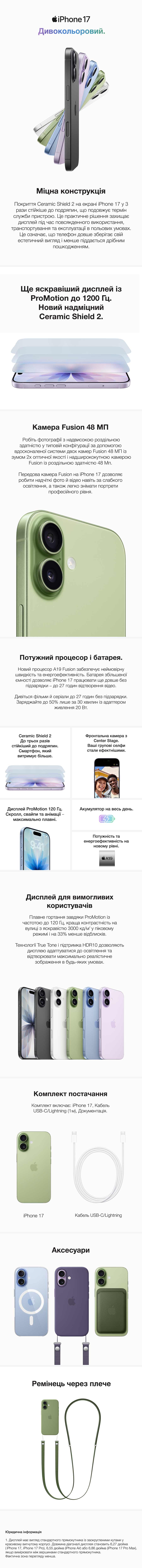iPhone 17 — це елегантний і потужний смартфон від Apple, розроблений спеціально для Apple Intelligence, системи, яка робить щоденні справи простішими та креативнішими. Завдяки цьому ви зможете легко створювати зображення, редагувати фото чи перекладати тексти в реальному часі, зберігаючи повну конфіденційність даних.