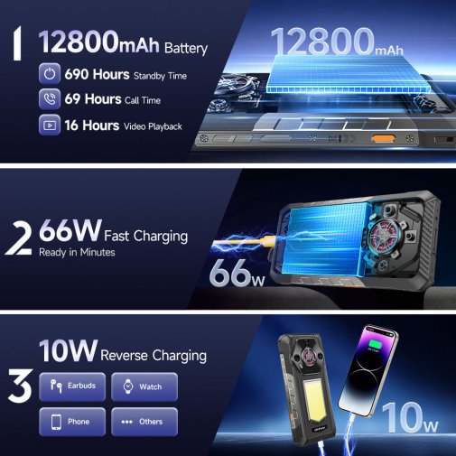 Акумулятор на 12 800 мАг гарантує до 690 годин у режимі, з швидкою зарядкою 66 Вт та зворотною на 10 Вт. Міцний корпус з захистом IP68 витримує занурення у воду, пил та падіння, а функції Infinite Halo 2.0 з динамічним підсвічуванням та роз'єм uSmart для професійних аксесуарів роблять Armor 30 унікальним помічником.
