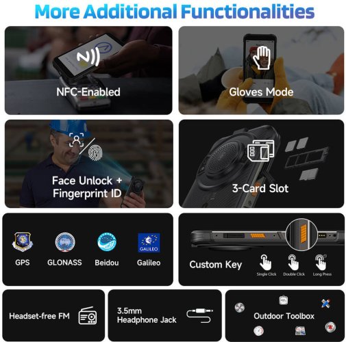 Смартфон Ulefone RugKing — це надміцний захищений телефон, створений для екстремальних умов, де звичайні пристрої швидко виходять з ладу. Він поєднує високу надійність, потужну батарею та гучний звук, роблячи його ідеальним вибором для будівельників, рятувальників, мандрівників чи любителів активного відпочинку.