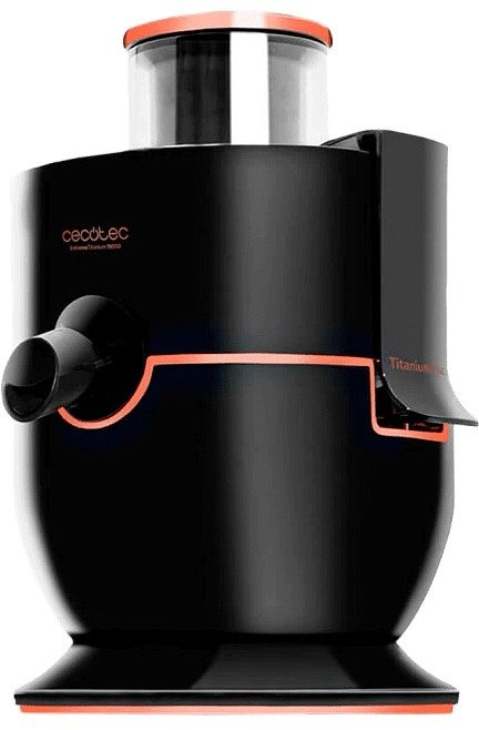 Cecotec Extreme Titanium 19000 має стильний дизайн: чорний глянсовий корпус з декоративними мідними елементами, прозорий штовхач для продуктів і компактну вагу — всього 2,17 кг. У комплект входять основний корпус зі штовхачем, глечик для соку та інструкція користувача. Ця соковижималка поєднує продуктивність, зручність і довговічність, роблячи щоденне приготування свіжих соків легким і приємним.