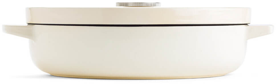 Сотейник діаметром 26 см та об'ємом 2,77 л має емальоване покриття, яке захищає поверхню від пошкоджень і сприяє рівномірному розподілу тепла. Виріб сумісний з усіма типами плит, включаючи індукційні, та витримує температуру до 260°C у духовці. Завдяки цьому його можна легко переміщати з плити у духовку, а потім подавати страву безпосередньо до столу.