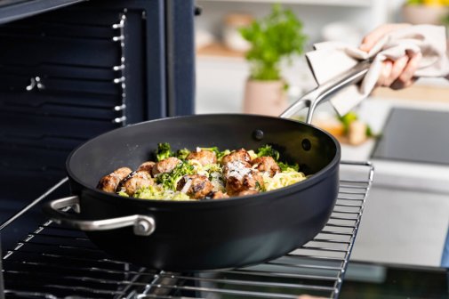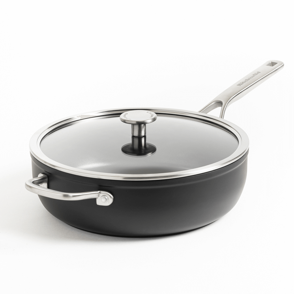 Найвищий рівень антипригарного покриття та довговічності. Колекція KitchenAid Forged Hardened Aluminium виготовлена з алюмінію великої товщини, що гарантує довговічність та стійкість до подряпин. Кований корпус для швидкого й рівномірного нагріву. Керамічне антипригарне покриття без PFAS забезпечує легке і швидке очищення.