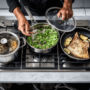 Підходить для всіх типів плит, включно з індукційними. Можна мити в посудомийній машині. Посуд придатний для духовки до 220°C. Без PFAS.