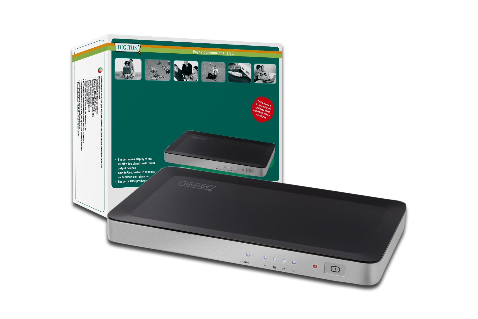 Digitus 4xHDMI (DS-42300) - практичний сплітер, який прзначений для розгалуження аудіо-відео сигналу від одного HDMI порту на чотири. Ви зможете одночасно під'єднати чотири монітора чи телевізора до одного джерела аудіо-відео сигналу при цьому якість сигналу не втрачається. Виготовленний в металічному корпусі для міцності та надійності.