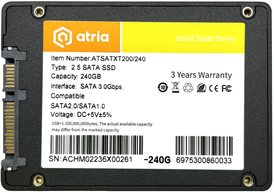 Atria XT200 SATA III — продуктивний швидкісний накопичувач, який виконаний у формфакторі 2.5" дюйми. Виготовлений із надійних матеріалів, має оптимізовану конструкцію та підтримує сучасні технології.