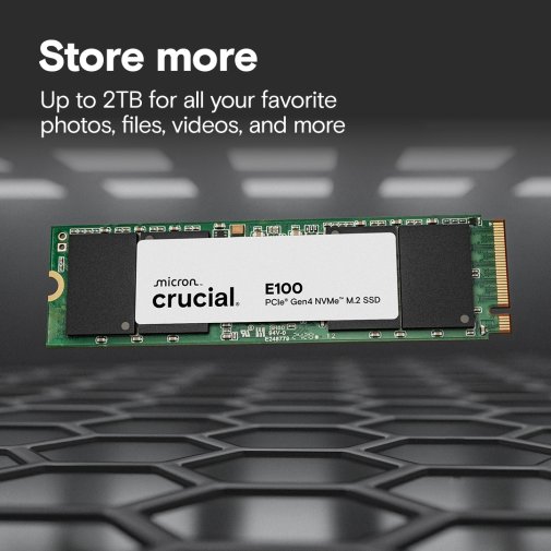 Crucial E100 2280 PCIe 4.0 Gen4 NVMe — високошвидкісний твердотільний накопичувач формфактора M.2, за допомогою якого ви зможете підвищити продуктивність вашої системи, насолоджуватися швидшими іграми та розширити свій творчий потенціал. Призначений для високопродуктивних систем та користувачів просунутого рівня.