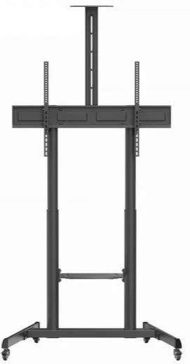 Gembird TVS-100T-03 — це міцна підлогова стійка для телевізорів, яка полегшує мобільне розміщення великоекранних пристроїв у офісах чи навчальних закладах. Сталева конструкція витримує до 120 кг, забезпечуючи стабільність навіть для найважчих моделей, а телескопічна регульована висота дозволяє швидко адаптувати стійку під будь-яке положення.