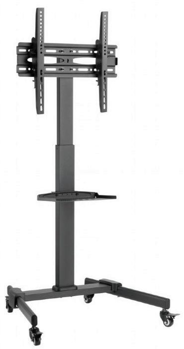 Металева підлогова стійка для телевізора на коліщатках Gembird TVS-55T-01 — це надійне та мобільне рішення для розміщення телевізора в домашніх або офісних умовах. Виготовлена з міцного металу, вона забезпечує стабільність і довговічність конструкції. Завдяки коліщаткам з механізмом фіксації стійку легко переміщувати по кімнаті, а потім надійно зафіксувати в потрібному положенні, що робить її ідеальною для презентацій, конференцій чи перестановок у приміщенні.