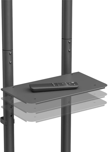 Стійка має зручне регулювання висоти на трьох рівнях — 1337, 1391 та 1445 мм, а загальна максимальна висота конструкції сягає 1654 мм. Крім того, передбачено регулювання нахилу екрана від +12° до -12°, що дозволяє налаштувати оптимальний кут огляду для комфортного перегляду з будь-якої точки кімнати.