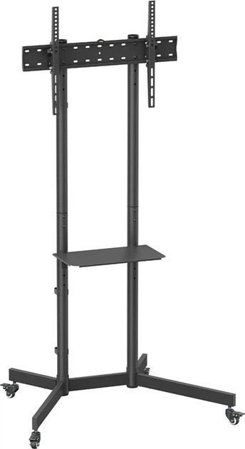 Мобільна телевізійна стійка iTECH T1042TE є надійним рішенням для безпечного розміщення сучасних LCD-панелей. Вона призначена для телевізорів з діагоналлю від 37 до 70 дюймів і здатна витримувати вагу до 45 кг. Конструкція забезпечує стійкість і дозволяє легко переміщати телевізор по приміщенню завдяки мобільній основі.