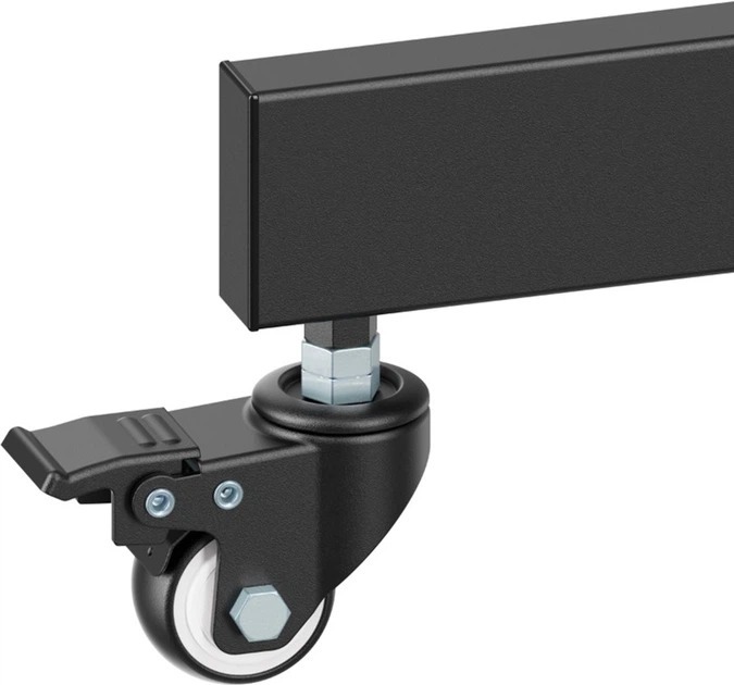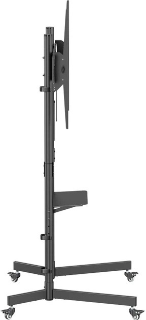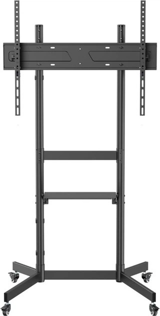 Універсальна підлогова стійка для телевізора ITech T1044TE є зручним та мобільним рішенням для LCD і плазмових телевізорів діагоналлю від 55 до 100 дюймів. Модель оснащена маневровими коліщатками, які забезпечують легке переміщення стійки без значних зусиль, а також регулюванням висоти для оптимального позиціонування екрана залежно від умов приміщення та потреб користувача. У комплекті йде поличка з навантаженням до 5 кг, що дозволяє розмістити додаткові пристрої, такі як зарядні станції чи пульти.