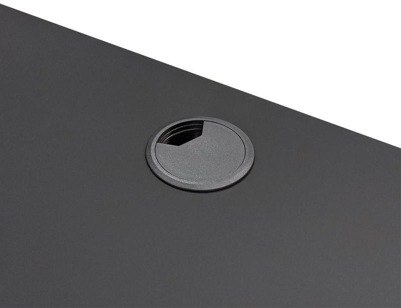 Для порядкування кабелів стіл оснащений наскрізним кабельним отвором у стільниці та підвісним лотком для кабелів під столом, який кріпиться без інструментів і ховає подовжувачі та дроти з видимої зони. Монтаж столу займає не більше кількох хвилин завдяки попередньо зібраній рамі — потрібно лише прикріпити стільницю до підніжжя у п'ять кроків.