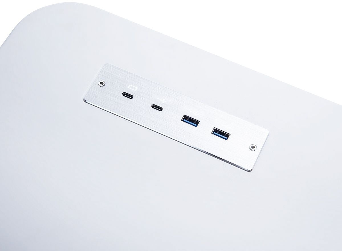 Ключова відмінність ELITE від базових моделей Royal — вбудована 7-в-1 докстанція, інтегрована прямо в стільницю. На верхній площині розміщені два порти USB-A (USB 3.1 Gen 1, швидкість 5 Гбіт/с), порт USB-C з функцією Power Delivery для зарядки ноутбука і другий USB-C лише для передачі даних. На нижній стороні стільниці знаходяться DisplayPort 1.4 і HDMI 2.0 з підтримкою роздільної здатності до 4K при 60 Гц кожен, а також порт USB-C для підключення живлення від адаптера до 100 Вт. Таким чином, до ноутбука можна під'єднатися одним кабелем USB-C і водночас отримати живлення, два зовнішні монітори в 4K, два USB-A і USB-C пристрої — без жодного хаба або адаптера на столі.
