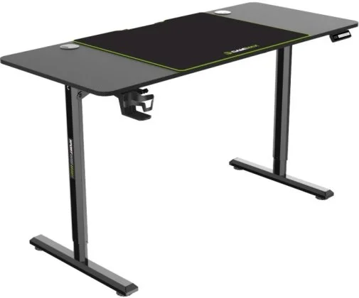 У глибокому чорному кольорі з карбоновою текстурою на стільниці він виглядає агресивно й преміально — ніби щойно з подіуму кіберспортивного турніру. Розміри стільниці 140 x 60 см з товщиною 1.5 см дають достатньо місця для великого монітора, клавіатури, миші з великим килимком і навіть кількох ґаджетів одночасно.
