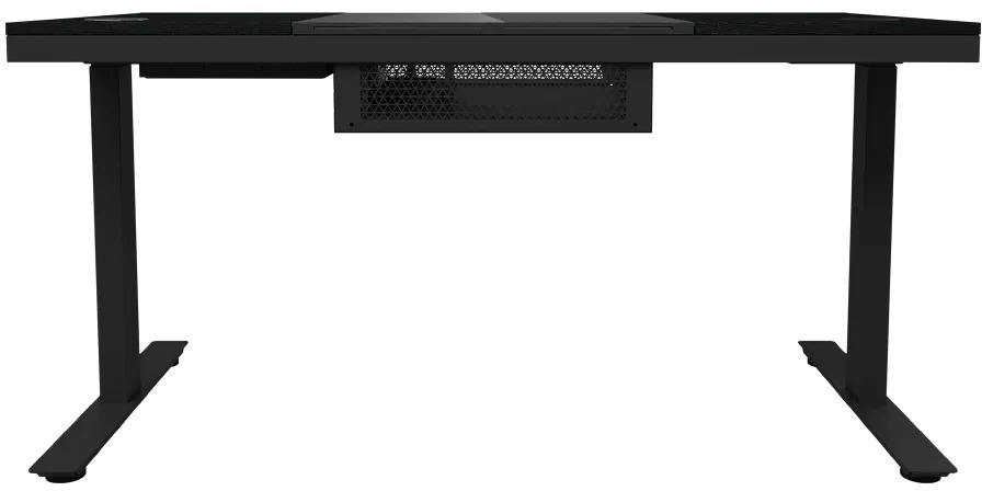 Стільниця столу виготовлена з міцного загартованого скла з олеофобним покриттям, яке надійно захищає поверхню від подряпин, відбитків пальців, розводів та слідів рідини. Простора робоча зона розміром легко вміщує кілька моніторів, клавіатуру, мишу та іншу периферію, роблячи стіл ідеальним як для геймерів, так і для професіоналів, які працюють з багатомоніторними конфігураціями. Загальна конструкція на базі алюмінію витримує навантаження до 80 кг, а вага самого столу становить понад 53 кг, що свідчить про його солідність та стабільність.