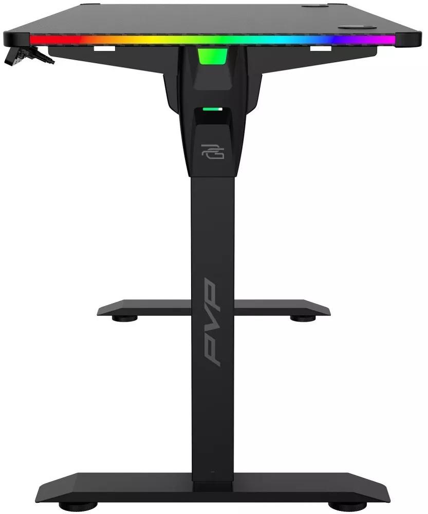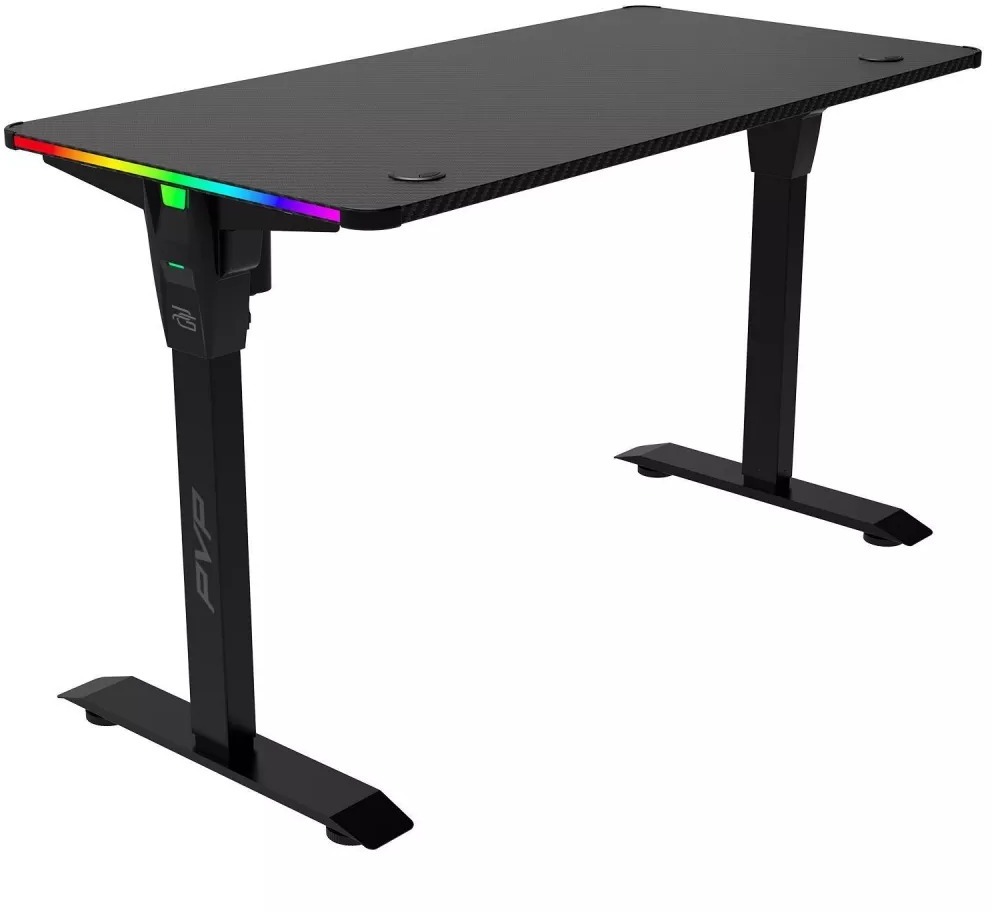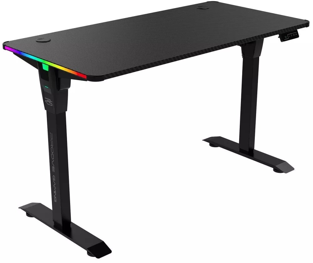 Розширені можливості роблять стіл ще зручнішим: підставка для чашки, гачок для навушників і кабельний бокс допомагають організувати простір. Підсвічування ARGB дозволяє налаштувати атмосферу одним натисканням, а пульт дистанційного керування додає комфорту. Пневмопідвісна система легко регулює висоту стільниці від 72 до 120 см.
