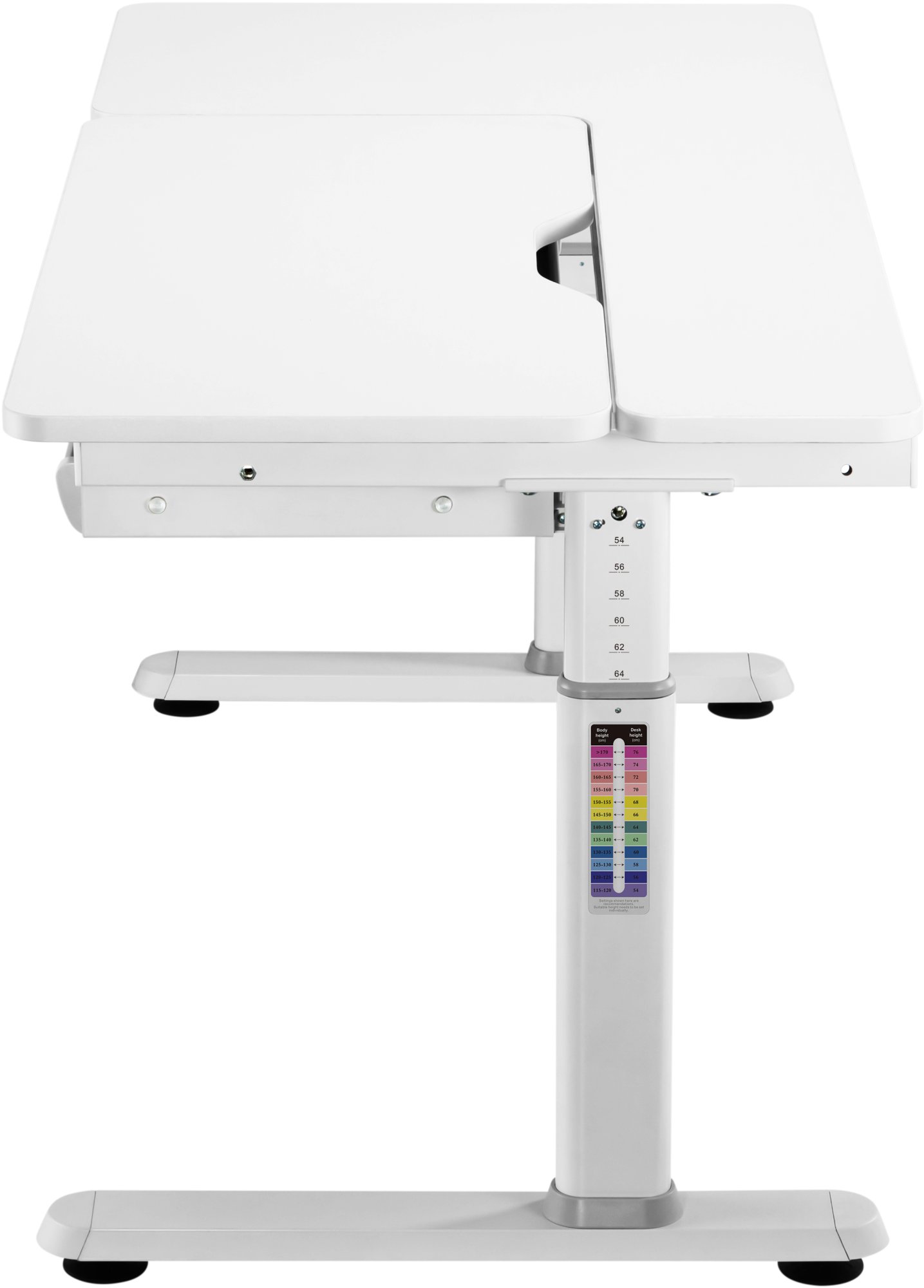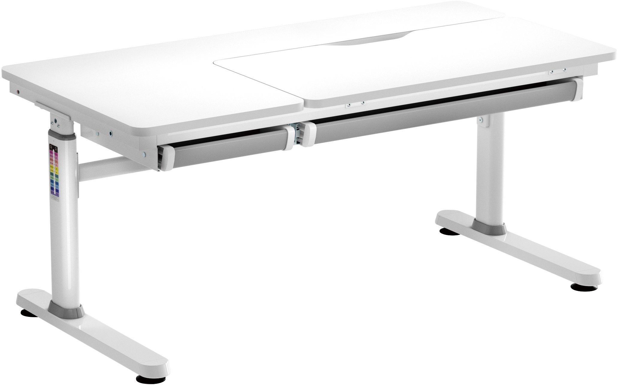 Стіл 2E CE301 — це практичний і продуманий помічник для навчання, творчості та повсякденного розвитку дитини. Завдяки компактним розмірам стільниці 1200 × 600 мм та регульованій висоті від 540 до 760 мм він легко адаптується до зросту дитини в різні вікові періоди. Нахил робочої поверхні до 50° (нахильна зона 800 × 400 мм) робить письмо, читання та малювання значно зручнішими, а матова біла поверхня товщиною 18 мм не дає відблисків і дбайливо ставиться до очей.