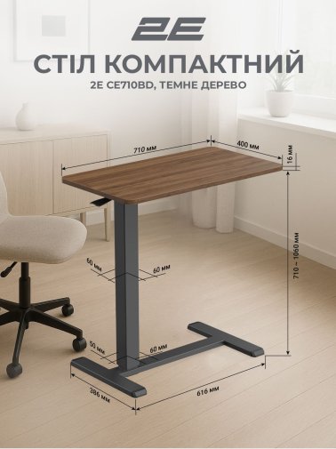 Комп’ютерний стіл 2E CE710BD з регулюванням висоти — це компактний, стильний і дуже практичний робочий стіл для геймерів, програмістів, фрілансерів чи офісних працівників, які хочуть ергономіку без зайвого місця і можливість швидко змінювати положення від сидячого до стоячого режиму.