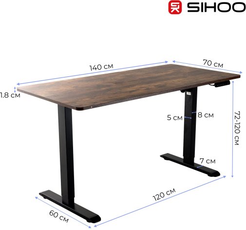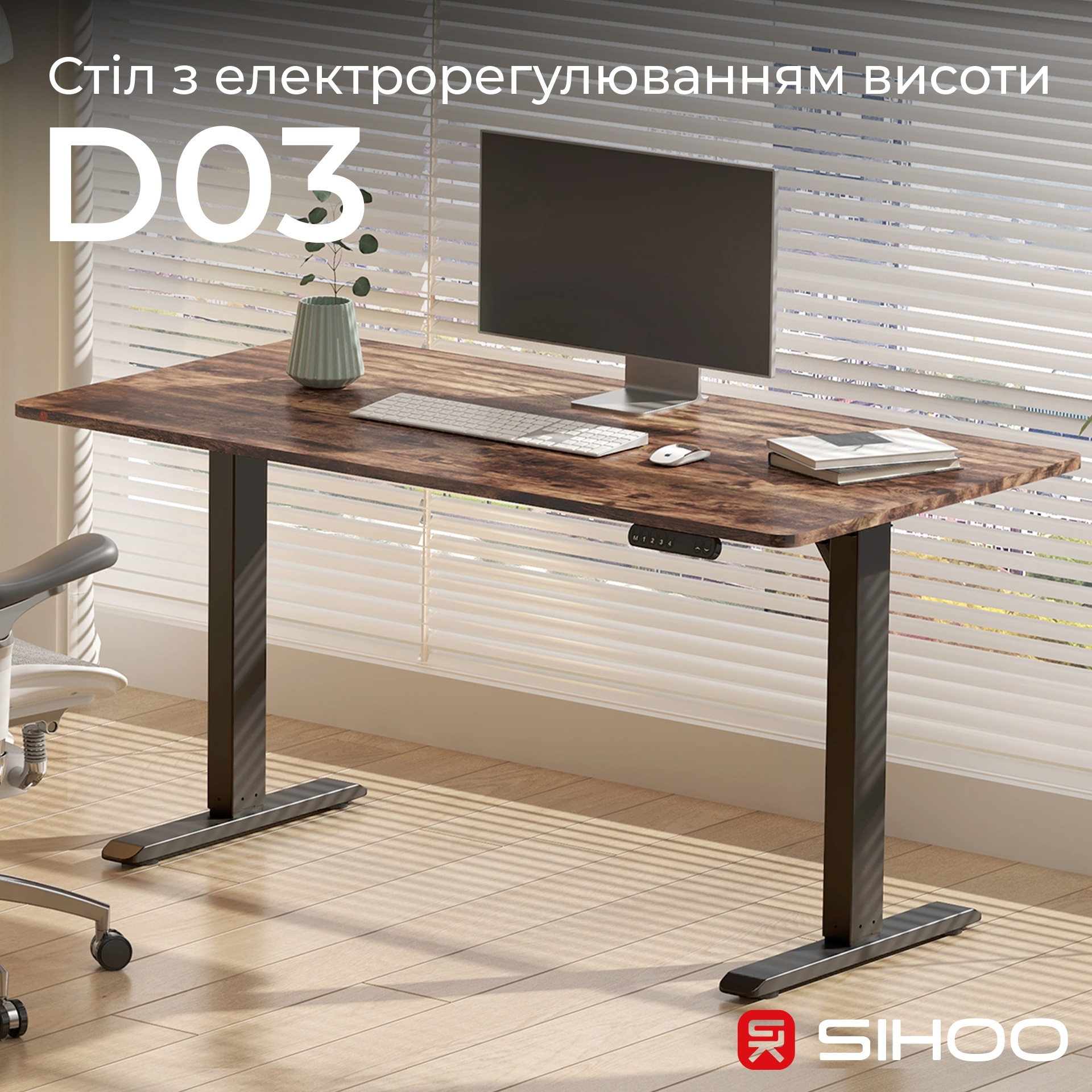 Sihoo D03 — це сучасний стіл з електрорегулюванням висоти, який дозволяє легко перемикатися між сидінням і стоянням протягом робочого дня. Він плавно регулює висоту від 72 см до 120 см за допомогою тихого безщіткового двигуна, сприяючи кращому самопочуттю та продуктивності.
