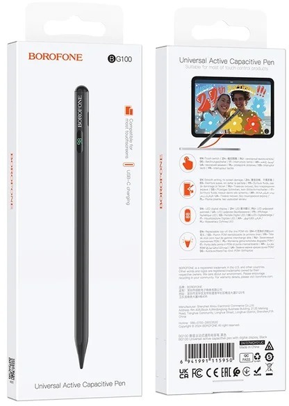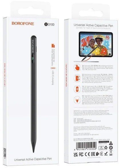 Стилус BOROFONE BG100 — це універсальний активний ємнісний стилус, який стане надійним помічником для роботи з будь-якими сенсорними екранами смартфонів і планшетів. Завдяки активній технології він забезпечує високу точність, дозволяючи комфортно малювати, писати нотатки, редагувати зображення чи працювати з документами.