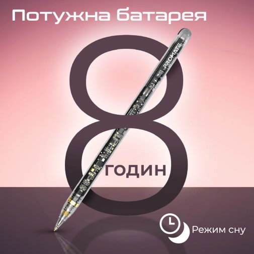 - 8 годин безперервної роботи: У твоєму розпорядженні повний робочий день. Стилус автоматично переходить у режим сну при бездіяльності.