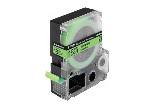 LC5GBF9 - оригінальний картридж-стрічка від компанії Epson. Він призначений для використання у спеціалізованих принтерах для термо друку наклейок. LC5GBF9 розроблений для використання в спеціалізованих принтерах Epson LabelWorks LW-400 / LW-400VP / LW-700 / LW-900P. Картридж легко встановлюється у відповідний друкувальний пристрій та завдяки значній довжині стрічки - 9 метрів, дозволить друкувати велику кількість необхідних наклейок. Стрічка має зелену, флуоресцентну основу та друкує чорним кольором, щоб забезпечити чудову видимість підпису навіть за слабкого освітлення.