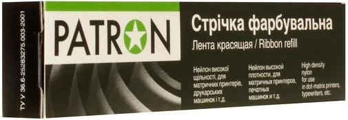 Стрічка для друкувальних пристроїв від компанії Patron. Виріб призначений для матричних принтерів компанії Epson та всіх вказаних моделей. Стрічка пофарбована в чорний колір. Її довжина - 12 метрів, а ширина - 13 мм. Це економний та вигідний варіант. Такої стрічки вистачить на досить тривалий термін.