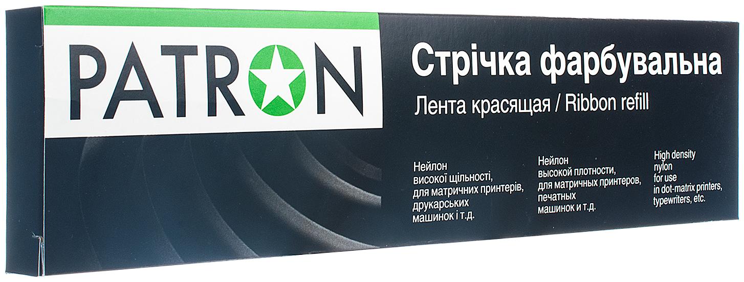Стрічка для друкувальних пристроїв від компанії Patron. Виріб призначений для матричних принтерів компанії Epson. Стрічка пофарбована в чорний колір. Її довжина — 60 метрів, а ширина — 12.7 мм. Це економний та вигідний варіант. Такої стрічки вистачить на досить тривалий термін.