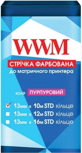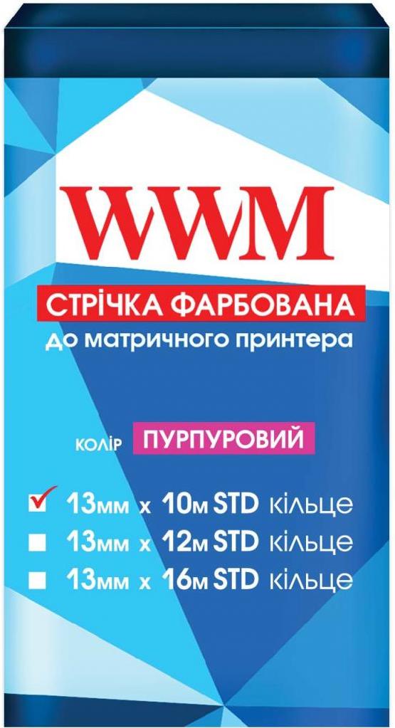 Стрічка для друкувальних пристроїв від компанії WWM. Виріб призначений для матричних принтерів. Він пофарбований в фіолетовий колір. Довжина стрічки складає 10 метрів, а ширина 13 мм.