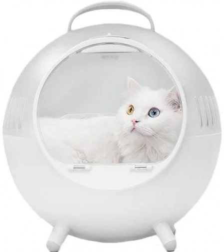 Виріб має кулясту форму, тому кіт комфортно зможе розміститися всередині. Виготовлена сумка із трьох матеріалів: полікарбонату, пластику і термопластичного еластомеру.