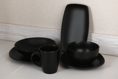 Тарілка обідня Ardesto серії Molize чорного кольору розміром 27х27 см. Виготовлена зі 100% екологічно чистої кераміки. Підходить для використання в мікрохвильовій печі та посудомийній машині.