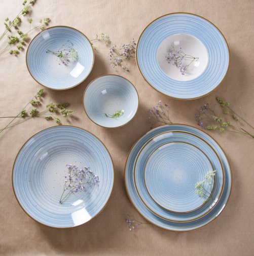 Вид: ОбідняСерія: CielФорма тарілки: КруглаРозмір тарілки: 26Матеріал: Кам’яна керамікаОсновний колір: Синій, Блакитний
