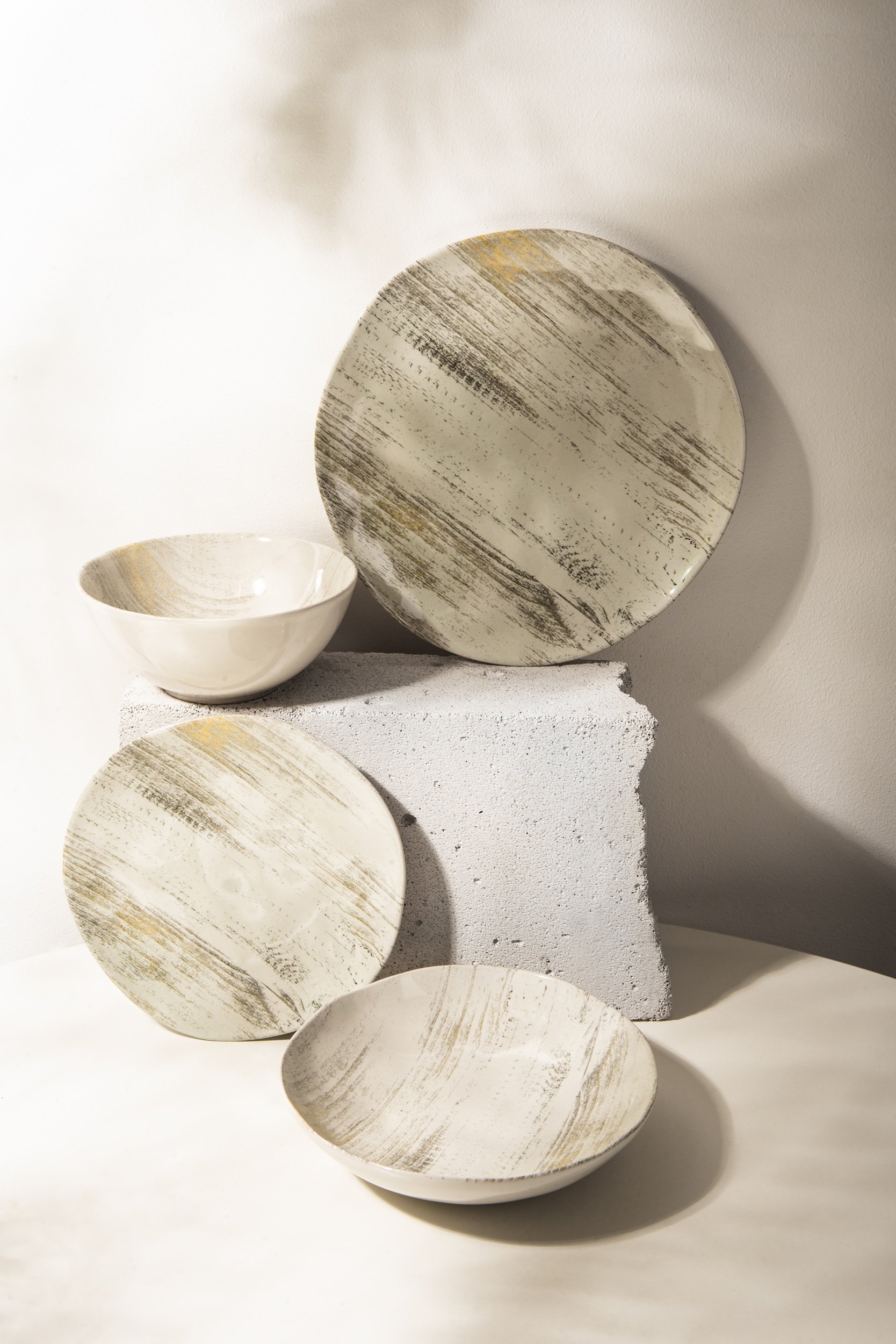 Кам'яна кераміка проходить подвійний випал, другий раз - при дуже високій температурі 1200 С. У результаті, глина та кварц сплавляються в єдине ціле - виходить матеріал, який поєднує в собі характеристики класичної кераміки та скла (міцний, як загартоване скло, і добре тримає тепло, як кераміка).
