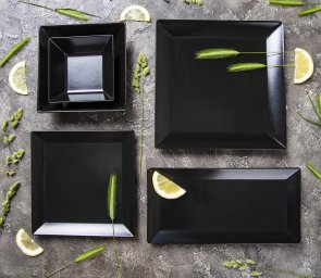 Вид: ДесертнаСерія: TokyoФорма тарілки: КвадратнаРозмір тарілки: 21Матеріал: Кам’яна керамікаОсновний колір: Чорний