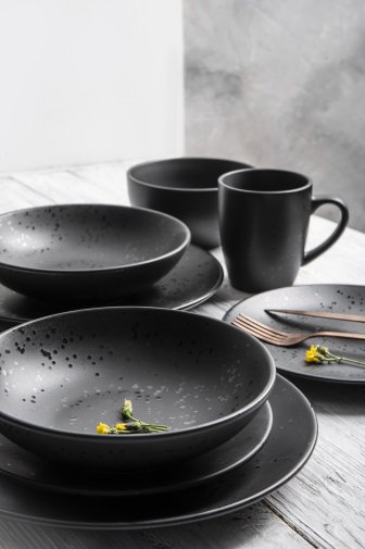 Застосовуючи високоякісну кераміку, що відома своєю міцністю і тривалістю використання, посуд з серії MEKKANO гарантує довготривалу якість. Його матове покриття, прикрашене глянцевими краплинами, створює унікальний і незвичний дизайн, який додає посуду особливого стильного вигляду.