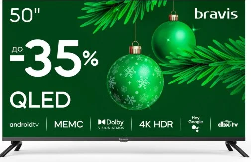 Телевізор Bravis K7000Q — це сучасний 50-дюймовий 4K UHD Smart TV, який поєднує доступну ціну з якісним зображенням і широким функціоналом. Завдяки роздільній здатності 3840x2160 пікселів він забезпечує чітку та деталізовану картинку, ідеальну для перегляду фільмів, серіалів чи спортивних подій.